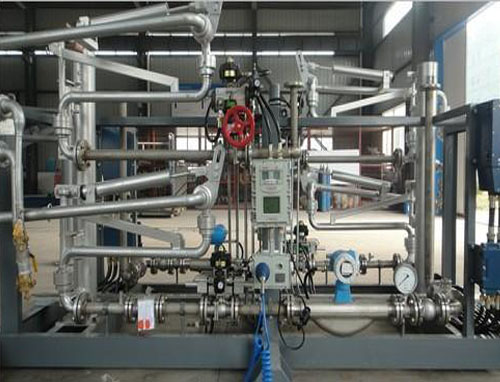 油品定量裝車橇裝組是指將每一個(gè)裝車鶴位內(nèi)的儀表和設(shè)備集成在一個(gè)專用的框架結(jié)構(gòu)內(nèi),儀表和設(shè)備包括裝車鶴管、流量計(jì)、防溢油靜電報(bào)警控制器、壓力變送器、裝車流量控制閥、緊急切斷閥,裝車泵、批量控制器等, 只預(yù)留工藝連接口和控制電源和通訊接口,這個(gè)整體集成部分稱為裝車橇。與傳統(tǒng)的裝車控制系統(tǒng)就地組裝比較,裝車橇可以節(jié)省現(xiàn)場(chǎng)設(shè)計(jì)和現(xiàn)場(chǎng)施工量,縮短項(xiàng)目工期,提高裝車控制系統(tǒng)的質(zhì)量。